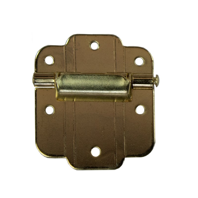 This sturdy Gerstner International Brass 6-hole surface mount Stop Hinge is designed to allow a top lid to open just over 90 degrees, which will keep the lid tilted back for stability. The Brass Stop Hinge includes (6) screws for installation in 1/2" thick wood.