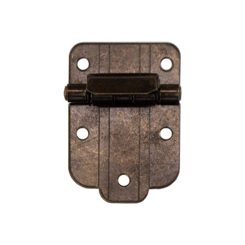 This sturdy Gerstner International Antique Brass surface mount stop hinge is designed to allow a top lid to open just over 90 degrees, which will keep the lid tilted back for stability. The Antique Brass Stop Hinge includes (5) screws for installation in 1/2" thick wood.